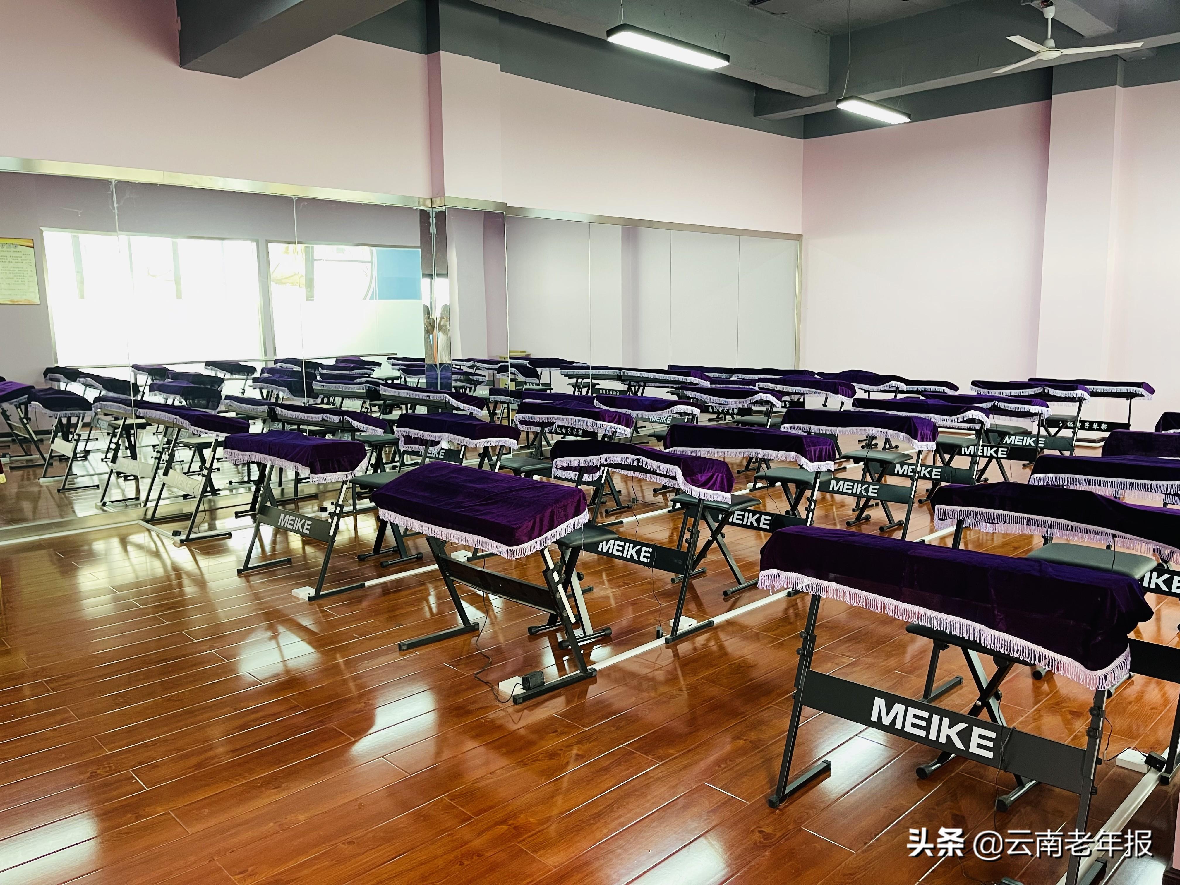 电钢琴、电子琴、古筝……宽敞明亮的10间教室里,教学设施应有尽有。8月18日上午,昆明东方老年修养学院广电校区在昆明市五华区环城西路广电大楼旁广得利写字楼三楼正式揭牌开课。