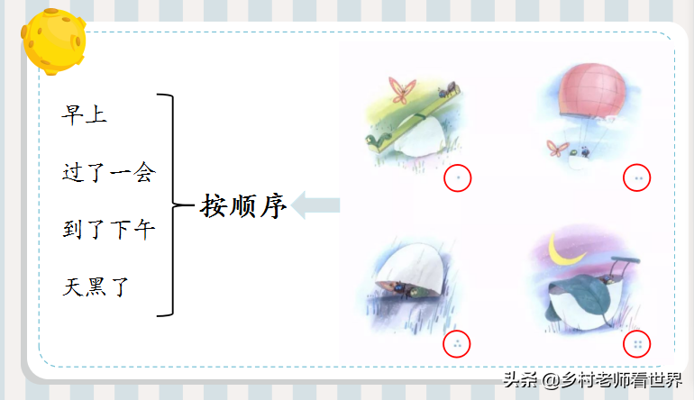 写的时候,可以用上“早上、过了一会儿、到了下午、天黑了”这四个词语。