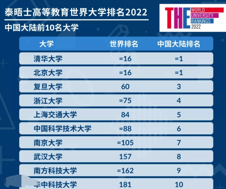 让人眼前一亮的是,在这份榜单里面,武汉大学进步空前,从去年的第10名,一跃成为了第五名。然后复旦大学却跌出了前五,也是让人颇感意外。要知道在泰晤士高等教育世界大学排名中国大陆的排名里面,复旦大学仅在清华北大的后面,位居第三。