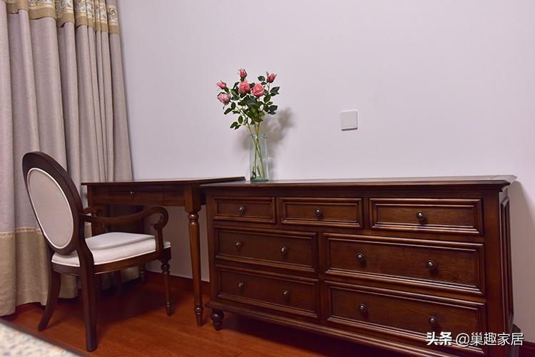 总的来说,整个客厅浅色背景和黑胡桃色家具相呼应的色调,和美式经典大气的氛围,都很符合我们家人的风格:低调,有内涵。