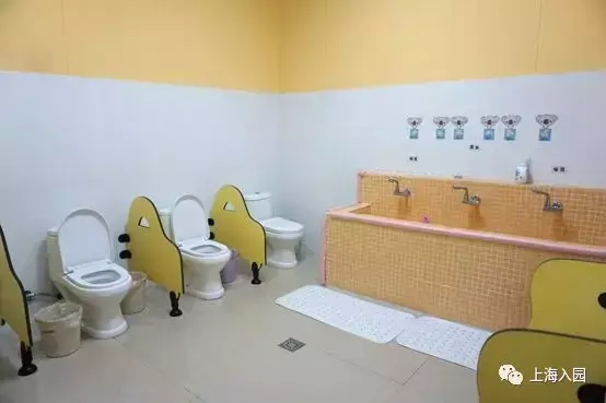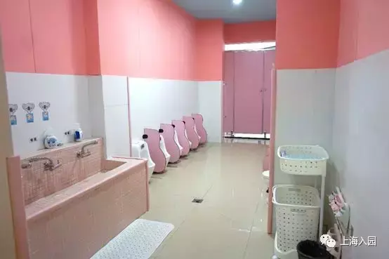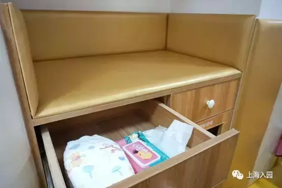 托育园一共有两个卫生间,面积都挺大的,不会很拥挤。走廊外面还会有专门的尿布台,保育员老师会在上面为需要的小朋友换尿布。