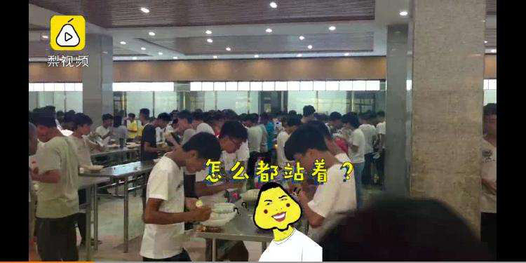 2018年8月,河南商丘睢县高级中学食堂内,因板凳被撤,学生们排队买饭后只能站着就餐。该校办公室工作人员回复媒体采访称,此举是借鉴外地先进经验,提高学生就餐效率,以便节约时间去学习。“下一步,还将给学生划好指定位置,就站在自己的位置上吃。一般来讲,吃个饭花10分钟就好了。”