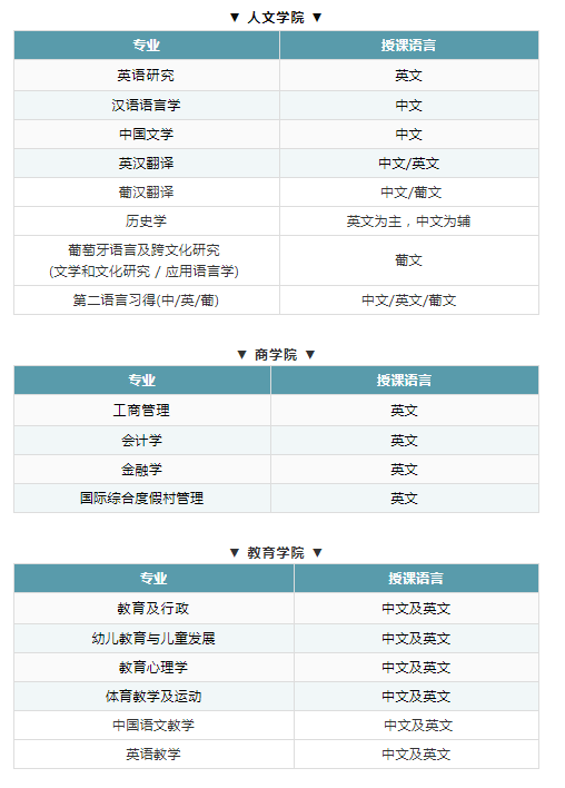 共7大学院(人文学院、商学院、教育学院、法学院、社会科学院、科技学院、中医药学院)提供硕士课程供学生申请。