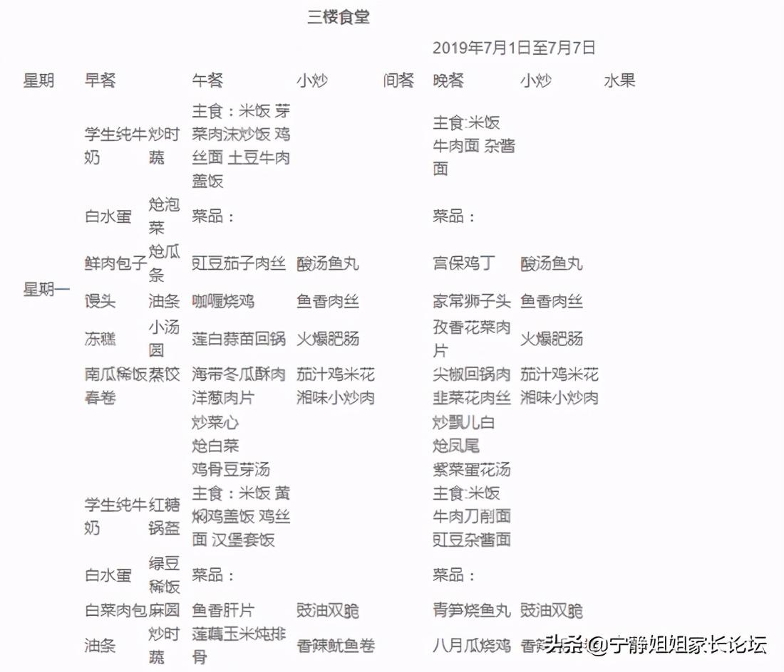 嘉祥锦江十分注重孩子们的身体健康,在学校官网上的后勤服务版块将每周的食谱公示出来,做到荤素搭配,营养均衡。