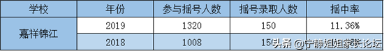 嘉祥锦江的热度一直很高,每年招生计划不多,但是报名的人数太多。2020年开始,民办取消面试,实行100%摇号,嘉祥锦江的具体报名数据没有收集到,这里我们参考下前两年的数据。