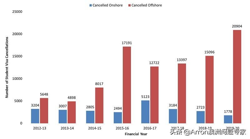 澳洲移民局有关取消学签的统计表。来源:内政部