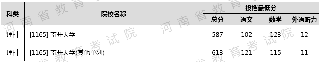 南开大学,投档线只有587分,比南开大学(其他单列)都低。