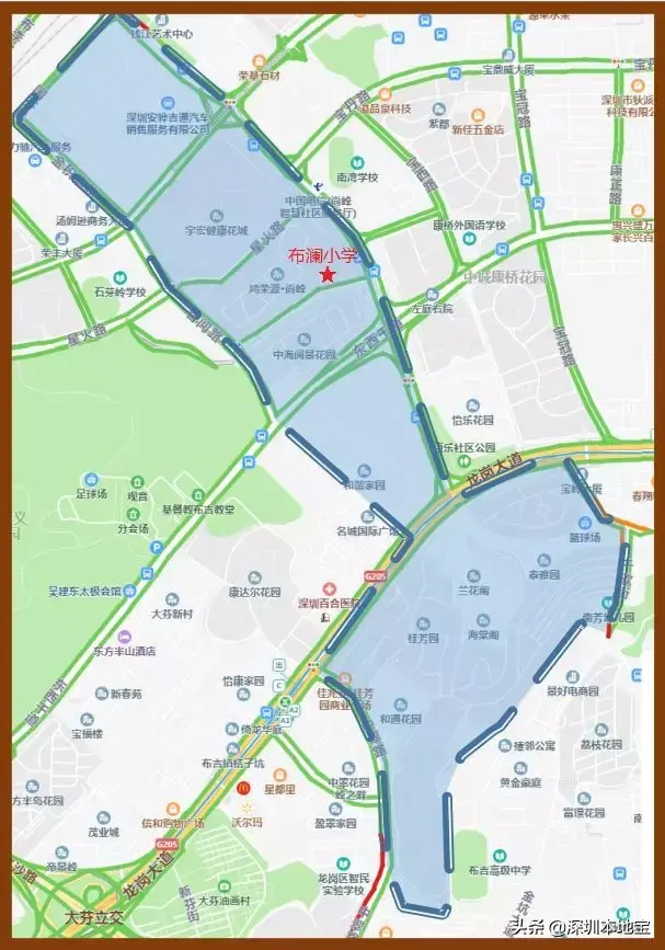 2.南湾学校龙岗大道以南部分。该招生范围与南湾学校共享。