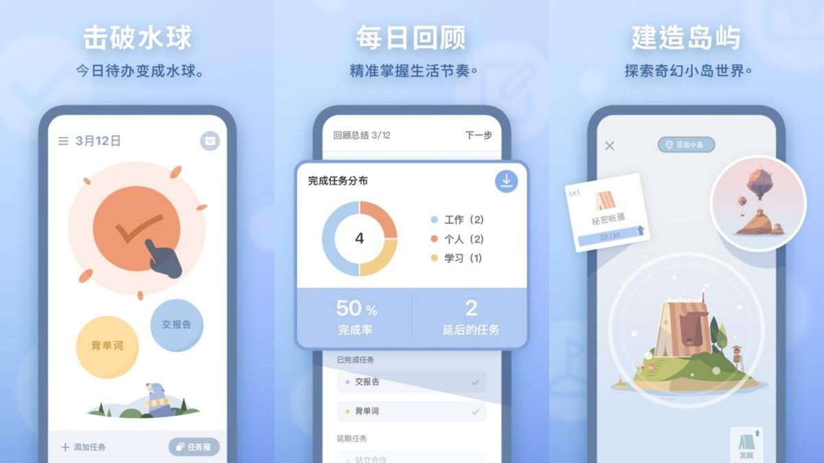 这款APP与大家经常推荐的Forest专注森林同团队,一款疗愈又有趣的待办事项清单软件,这个软件上可以将每个待办事项都变成一颗颗水球,完成任务之后就可以戳破它,获得满满的成就感,还可以对每日事项进行回顾、探索多种主题的岛屿,虽然是待办事项软件但是非常有意思~