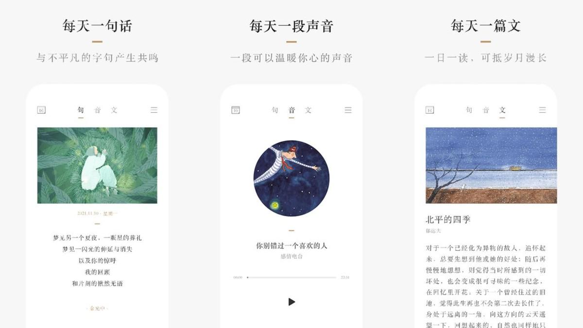 如果你是那种文艺风的同学那这款APP应该会很适合你!每天会精选推送一段话、一个故事、一篇文章,每天一会会就可以在这些温暖的内容中找到自己的一个小天地啦~