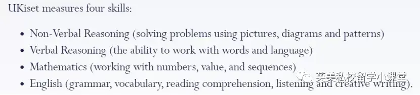 看完这些学校,你会发现,英国私校的入学考试,很多都采用UKiset考试,主要考查英语、数学、文字推理和图形推理,即便是自命题的学校也一定会考英语和数学!
