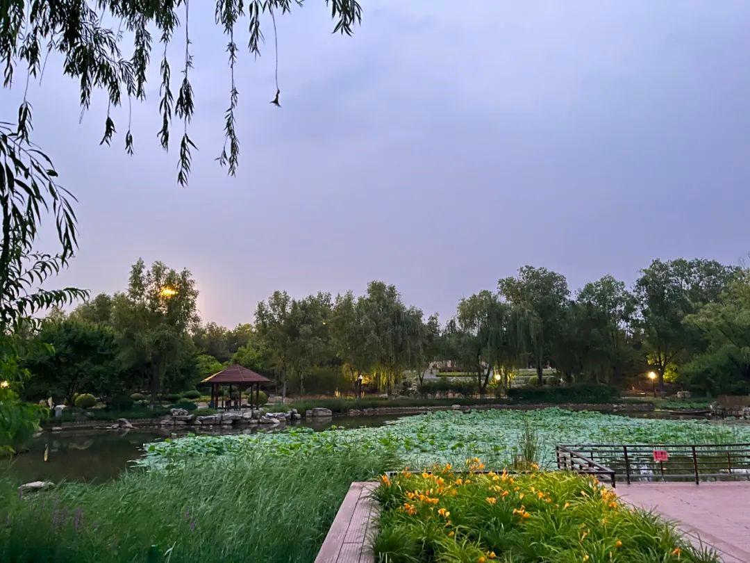 这里或许是最安逸的朝阳家长聚集地之一。吹萨克斯的老人在亭子里自我陶醉,鸭子、鱼在莲花池塘里翻滚,乌龟刚爬上岸边,又被旁边的小孩吓得缩回了头。太阳公元业主张琳看着女儿在公园里疯跑,她坐在花坛下,守着女儿的滑板车。她们住在太阳公元,这里有女儿的同学、朋友,公园的滑梯、秋千和攀岩是她们的最爱。往远处看,还有一家三口在傍晚搬来了露营椅,靠在罗汉松下,身体舒展,仰头眯眼,直到不见一丝天光才回去。