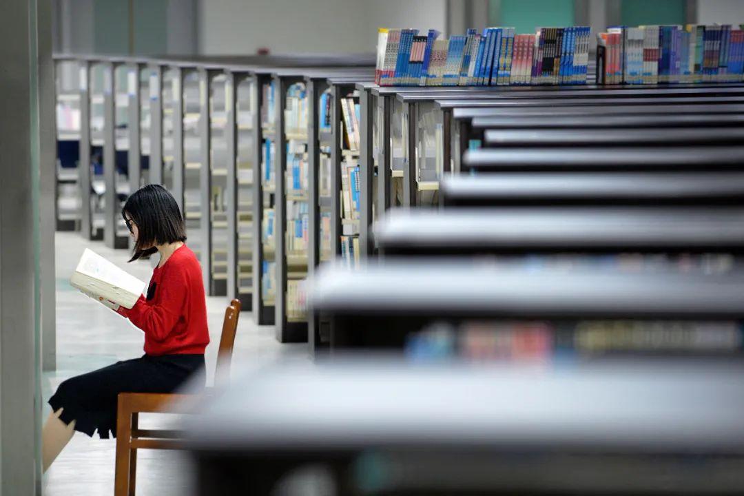 湖北经济学院图书馆,学生捧书阅读(摄影:杨宏斌)