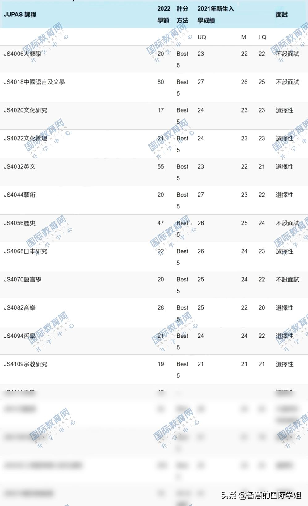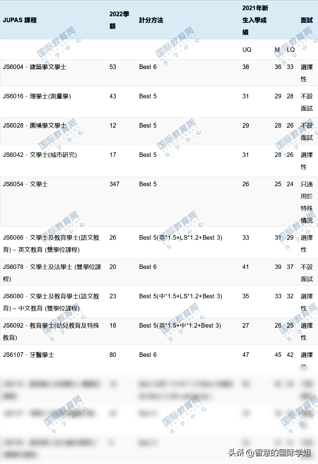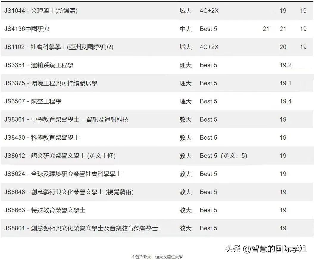 另外像香港教育大学,几乎所有课程都是按照最佳5科计算,收生分数在18-22分之间,因此对于想投身教育行业,分数又没有竞争优势的同学,非常合适。