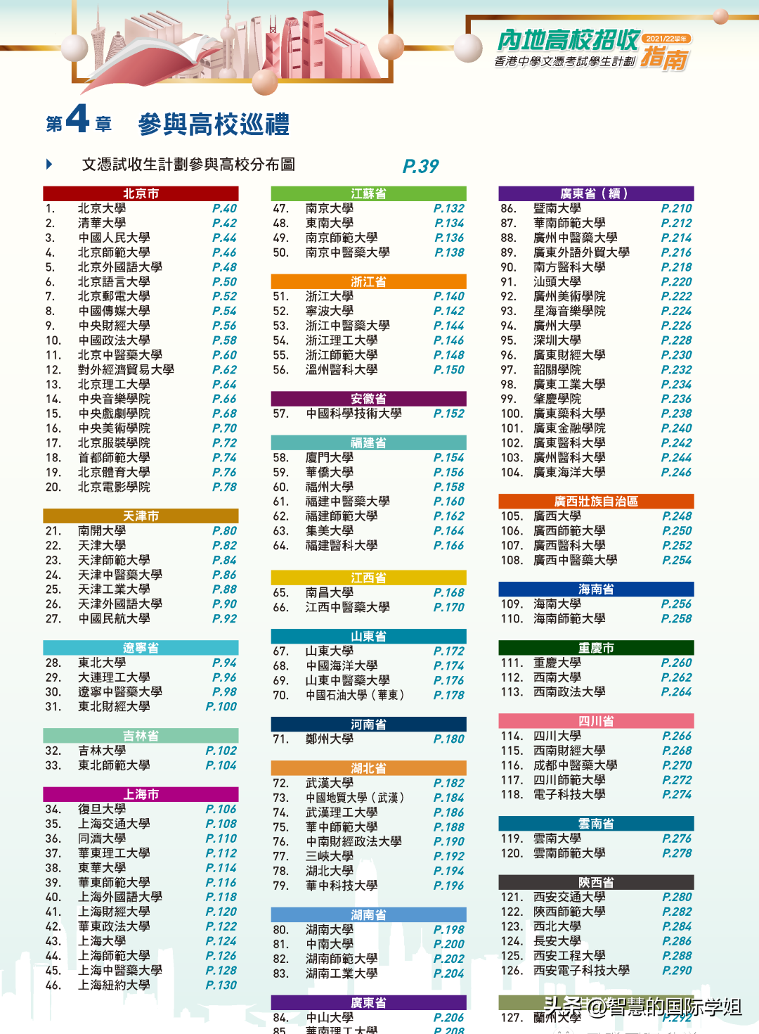 港澳台联考主要集中在内地升学,且内地全部211大学都招收港澳台联考学生。目前全国接收华侨生报考的高等院校达到了336所之多,共1000多个专业,预科招生院校也有16所,包含了所有大家耳熟能详的985/211高校:北大、清华、人大、复旦、同济、南开等。