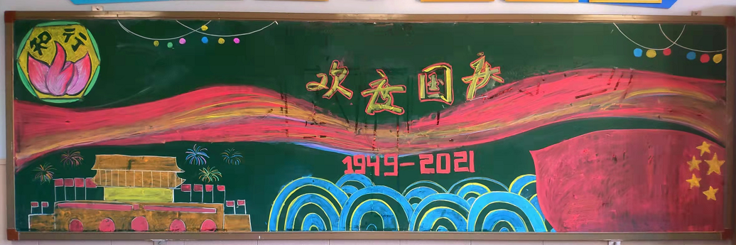 国庆节来了,学生以文字、美术等形式在黑板上表达对新中国的美好祝福,愿我们的国家越来越强大,人民越来越幸福。