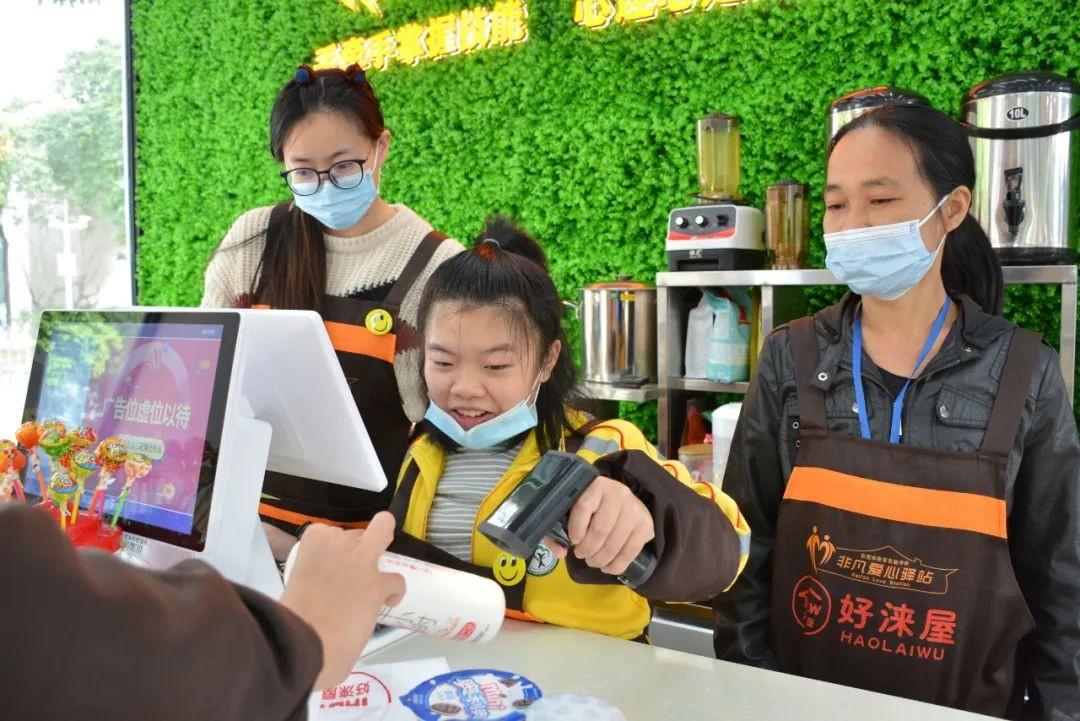 因为现在社会无障碍建设还不是很完善,在出行不方便的情况下,应该尽量减少他们跨区域跨镇街远距离的就业。另一方面,许多特殊孩子的家长往往会为了照顾孩子而耽搁了自己的职业发展,那么“1+1”就业模式就能兼顾两者的就业。像在士多店或超市里让孩子和家长实现家门口就业,这对他们来说是一个很好的出路。