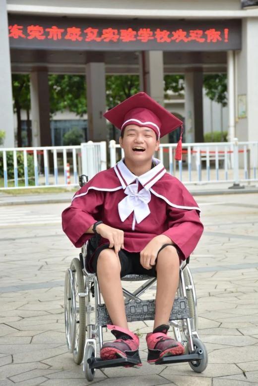 另外一个想说的是赵赢同学,他刚来我们学校的时候,说话不利索,行走也不方便,因为他的双下肢很难站立,他都是坐着轮椅的。他很腼腆,可能身体的原因,导致他的内心比较自卑,不愿意对外交流。但经过几年在学校的成长,他慢慢变得乐观了。前年他参加一个作文比赛,他居然代表我们学校得了全省的一等奖。这个比赛不是特殊学校举办的,是面向整个广东省所有中小学的征文比赛,他和所有普通学校的孩子一起来竞争。所以这个奖得来不容易,我们也很惊讶。