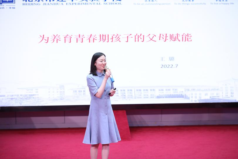 最后,北京市建华实验学校心理教师王璐老师,为家长们带来“为养育青春期孩子的父母赋能”的主题讲座,家校共育,共同助力孩子的健康成长。