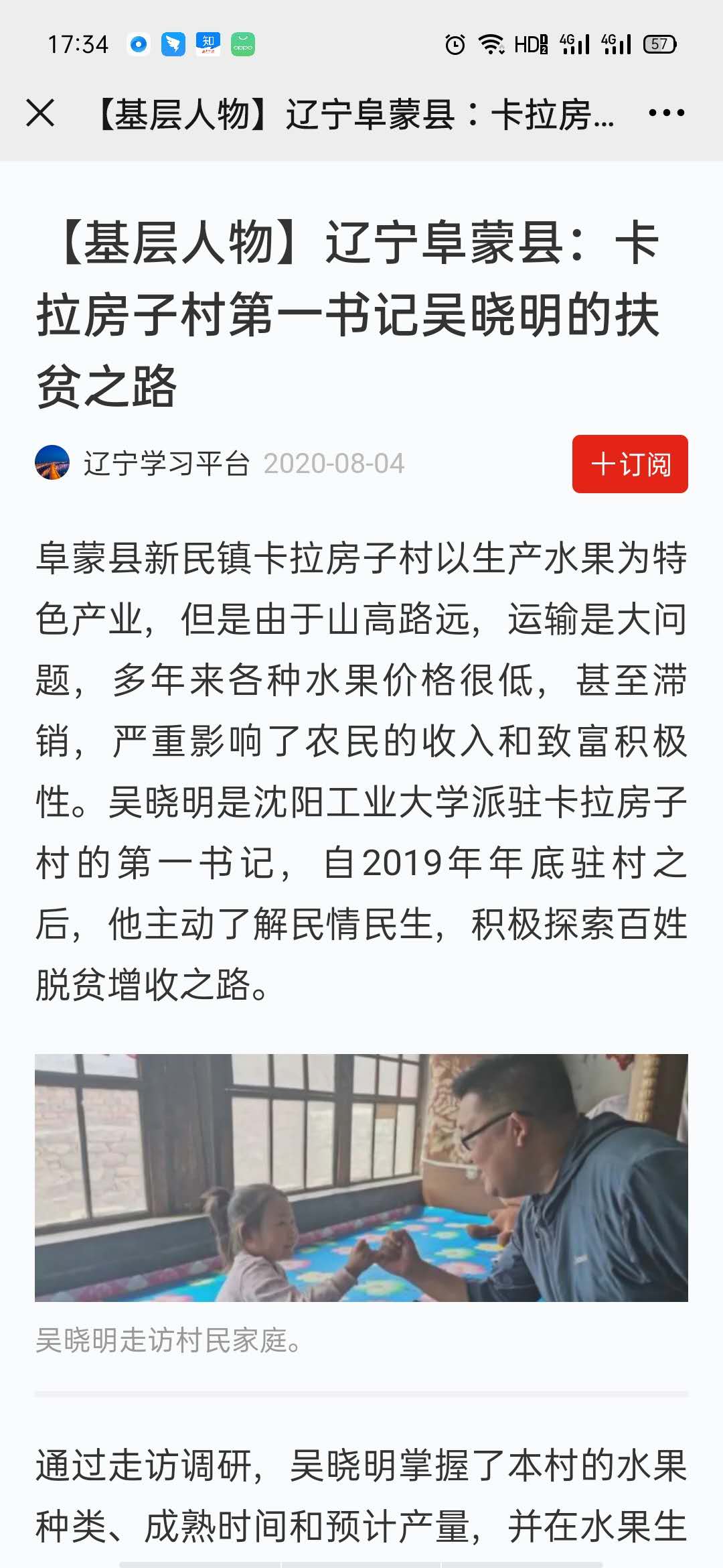 8月4日,学习强国以"【基层人物】辽宁阜蒙县:卡拉房子村第一书记吴晓明的扶贫之路"为题报道了沈阳工业大学驻卡拉房子村的第一书记吴晓明,自2019年年底驻村之后,他主动了解民情民生,积极探索百姓脱贫增收之路。