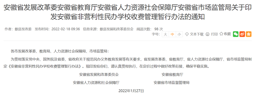 对于非营利性的非普惠园,现在全国各地正在紧锣密鼓地制定非营利性民办学校的收费管理办法。比如安徽2022年1月27日发布的《安徽省非营利民办学校收费管理暂行办法》第三条就规定:民办学校学历教育收费(包括学费、住宿费,下同)、幼儿园收费(包括保育教育费、住宿费,下同)实行政府指导价或限价管理,其他非学历教育收费实行市场调节价。