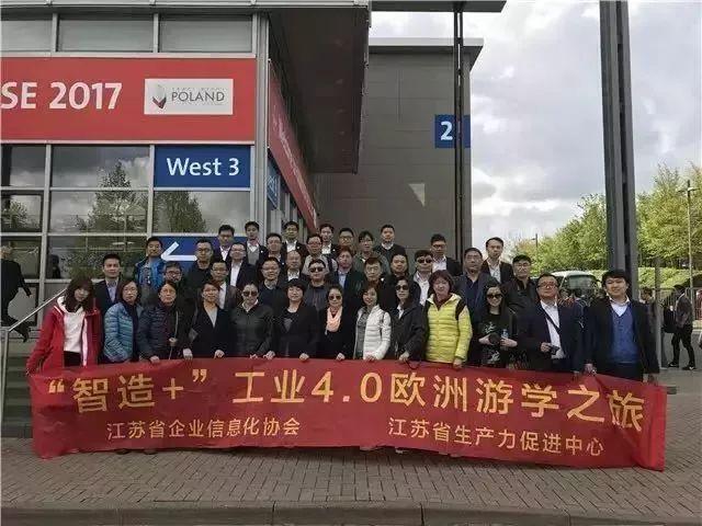 2017年4月,由江苏省企业信息化协会携手江苏省生产力促进中心联合主办“德国深度游学”再次走进汉诺威,亲身与工业4.0先行者管理层、员工接触、交流、分享,更深刻、全面地学习德国工业4.0标杆企业成功的精髓,学习德国工业4.0标杆企业的优秀管理理念、杰出的经营方法及科学的业务流程。