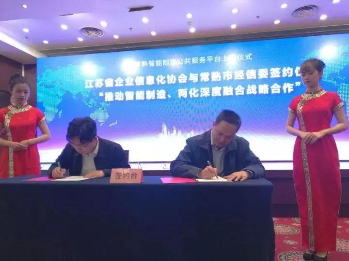 10月30日,常熟智能制造公共服务平台上线仪式暨常熟市智能制造产业联盟成立大会在常熟会议中心举行。在本次大会上,江苏省企业信息化协会与常熟市经信委正式进行战略合作,共同打造互利互惠的共赢模式,助力常熟市企业智能化建设及两化深度融合转型升级。