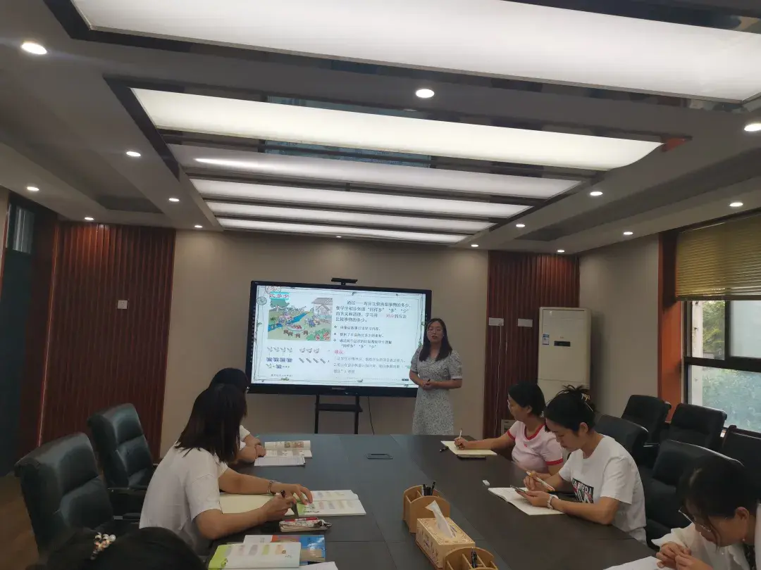 8月29日下午,一、二年级组精心筹备并开展教材分享会,王媛媛老师先分享了自己一年级教学的心路历程以及一些教学组织办法。接着,她从单元整体教学的角度分享了教材内容以及这些内容之间的联系。她的分享不仅能帮助今年的一年级老师做好心理铺垫,也提供了很多实用的教学组织技巧。