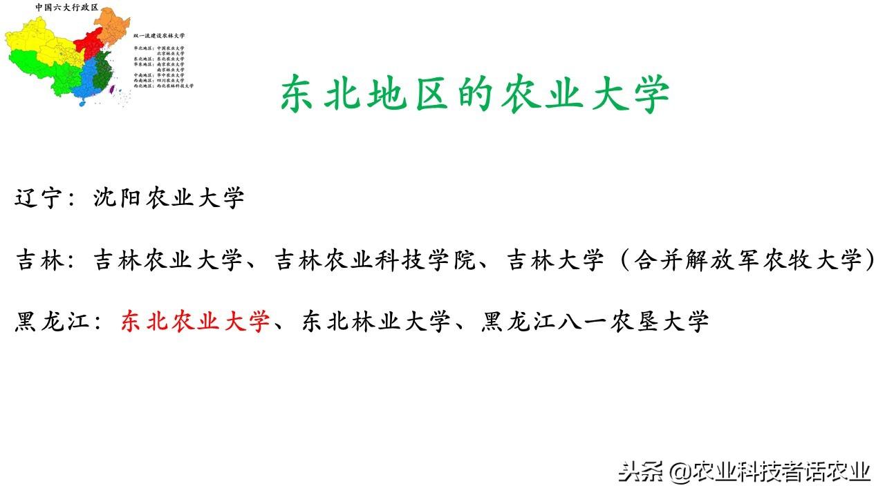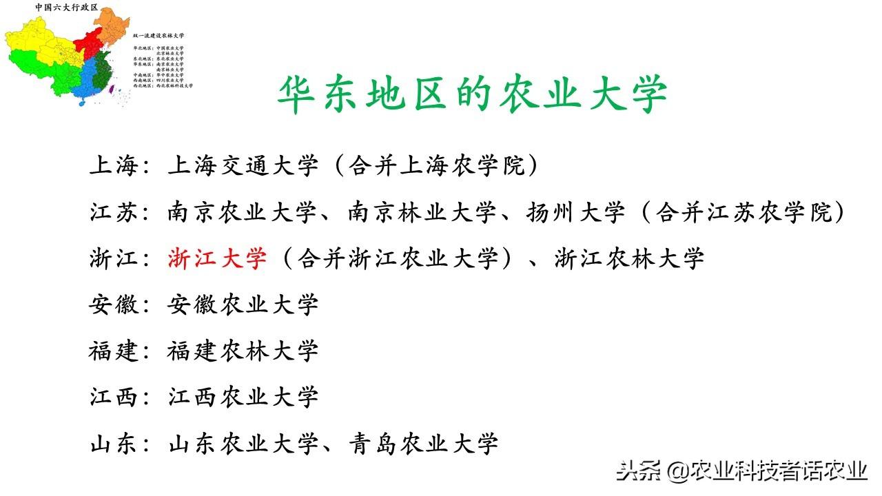 中国是农业大国,历来重视农业教育。中国高校行政色彩浓厚,中国的农业大学分布与中国行政区划高度吻合:六大行政区均有一所现世界双一流农业大学、原211农业大学,每个省区至少有一所农业大学。