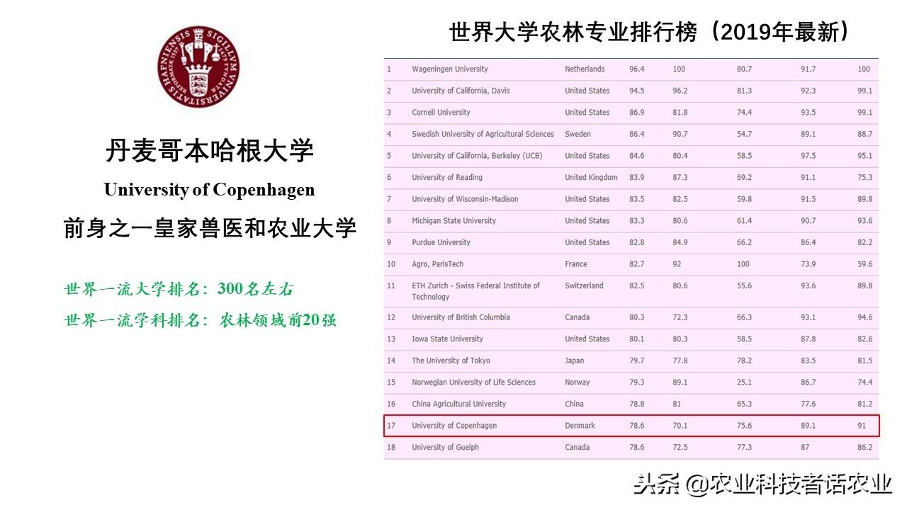 世界农业(综合性)大学排行榜:荷兰瓦赫宁根大学第一!