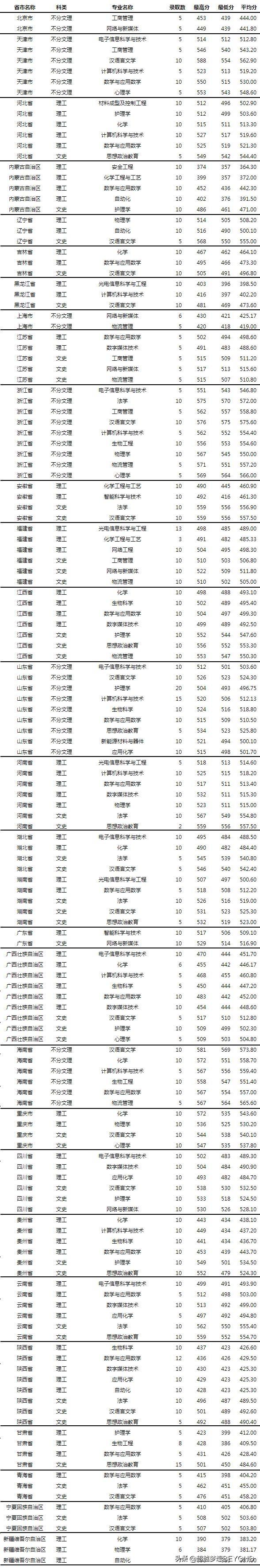 29个省份本科文理科各专业的录取人数、录取最高分、最低分和平均分等信息统计情况,请看下表。