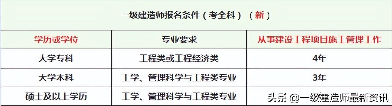 依据人社部的最新公告,2022年一级建造师报考条件调整如下: