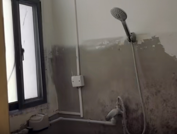 这间屋子算他要住四个人,房间拥挤不堪,上床下桌,摇摇晃晃,打开柜子,还有垃圾,窗外还有施工的工地。