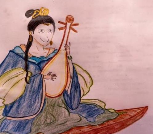 由是他就画了一位女子在船上弹琵琶,这位学生把女子的身上画得看起来很不错,但一看到脸的时候,真是让人忍俊不禁,竟然将表情包画了上去,甚至有网友看后调侃“辣眼睛”。