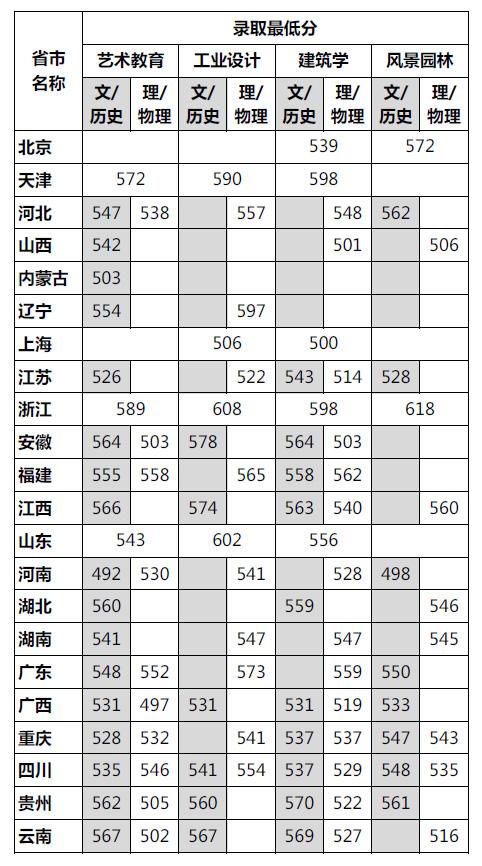 1、各省(自治区、直辖市)艺术类提前批录取分数线