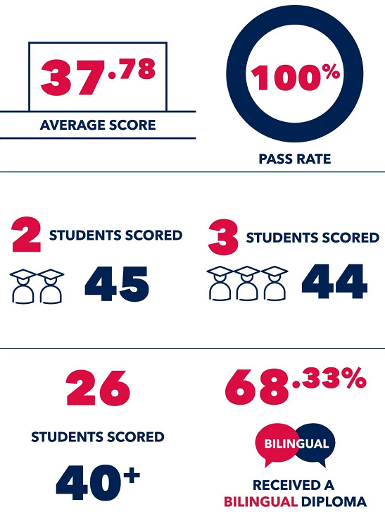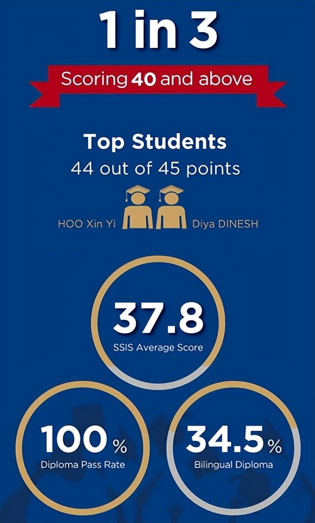 在2022年5月的IB全球统考中,上海新加坡外籍人员子女学校学生平均分为37.8分,38.5%的学生获40分以上的优异成绩,其中,2名学生获得44分的高分。