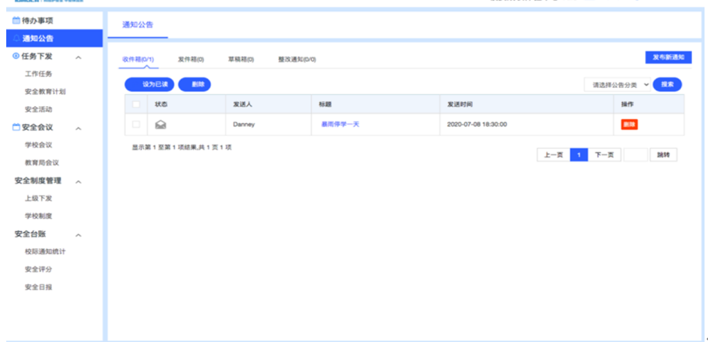 可通过系统发布通知公告,如下达安全教育计划通知、安全活动通知,支持文本文档、图片、动画、网页、红头文件、附件。支持接收、查看教育局下发的通知公告。