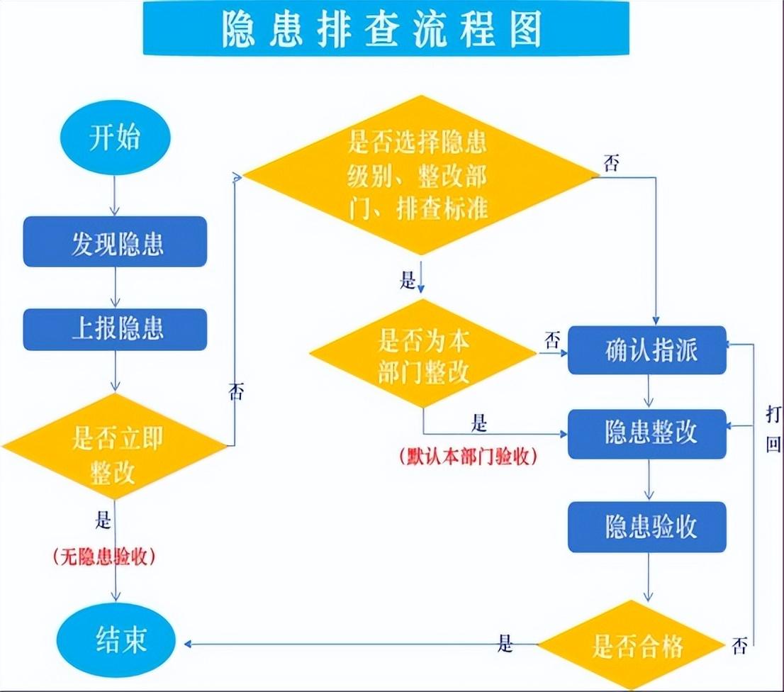 隐患排查流程严格按照系统内设置的流程进行,所有隐患在管理人员发现后,需要经过发现隐患、上报隐患、任务指派、隐患整改、隐患验收,最后形成数据台账记录在内。