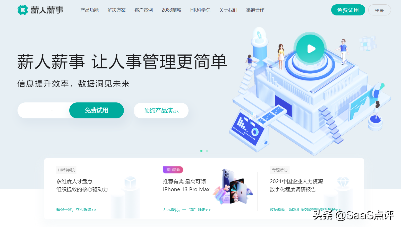 SaaS点评网自2019年上线以来不断收录用户评价,旨在帮助大家做出更好的选择。本文介绍HRM人力资源管理综合HR SaaS排行榜单。