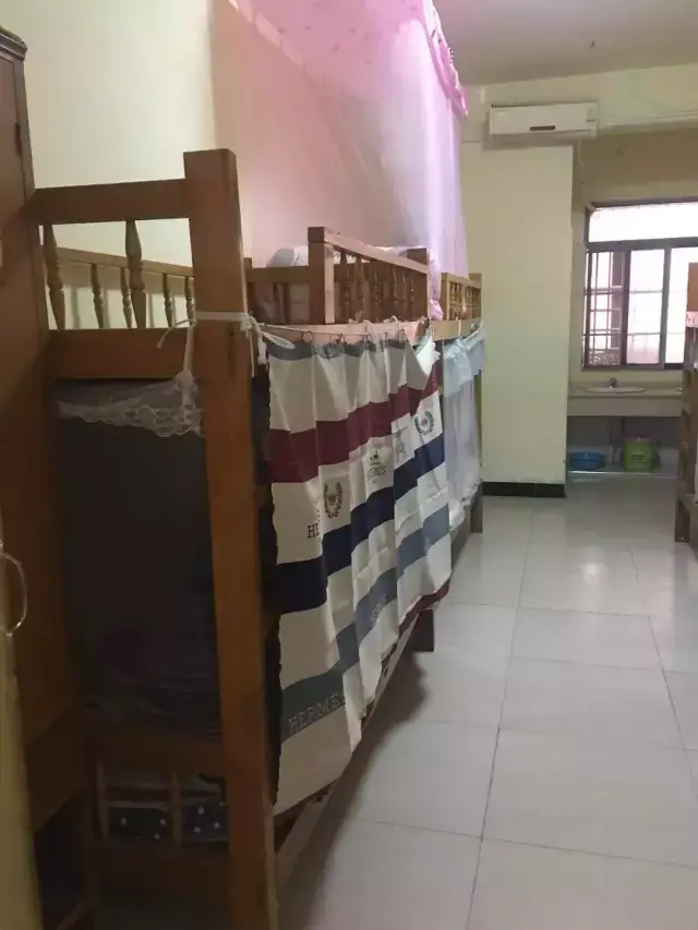 宿舍8人间无卫生间有空调,每层一个公共浴室,22点熄灯,老师会查房。