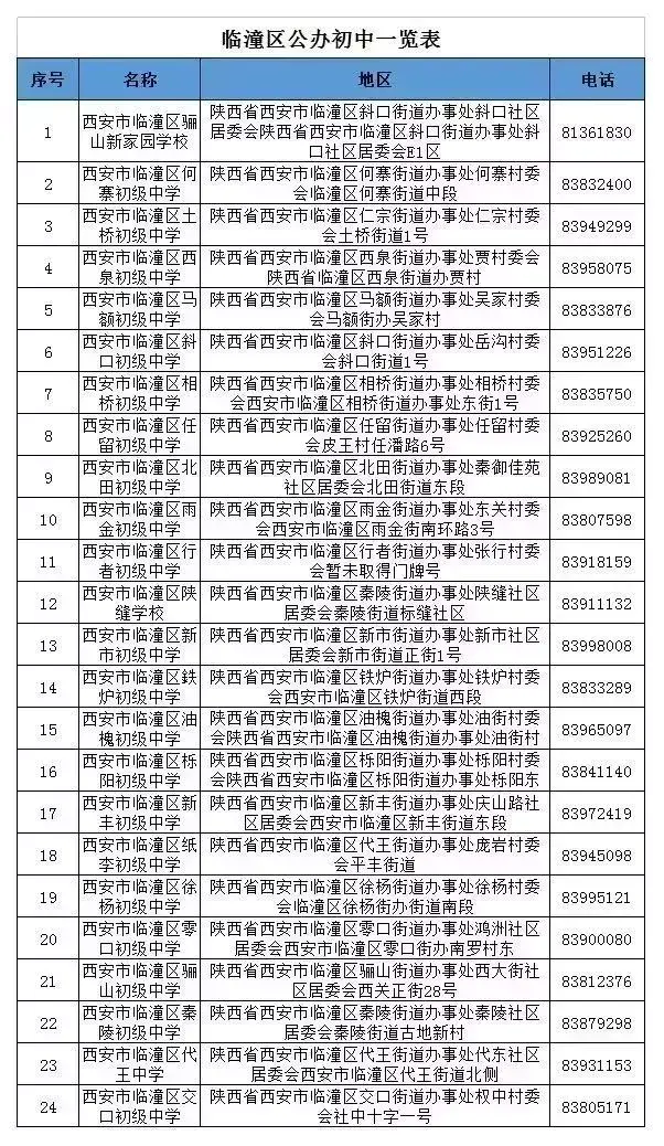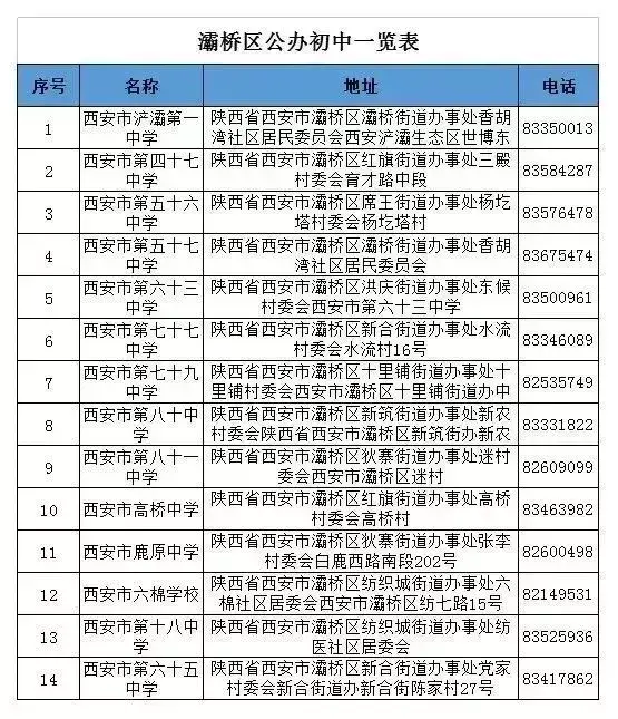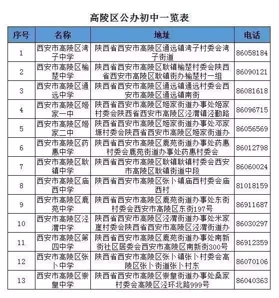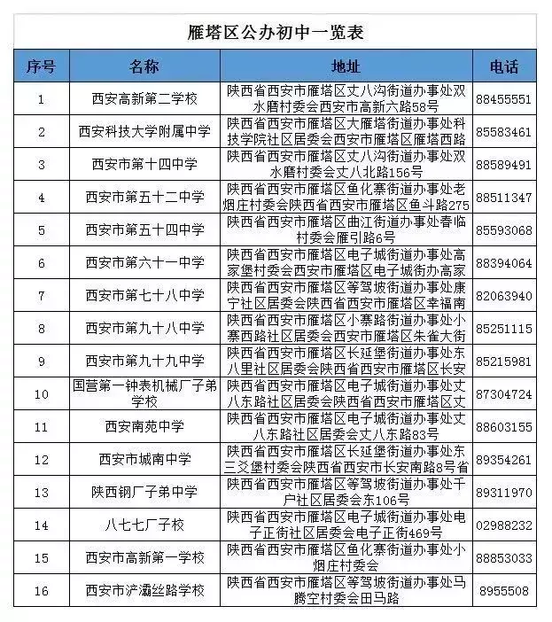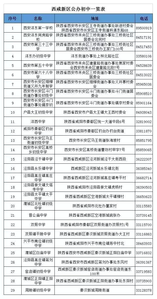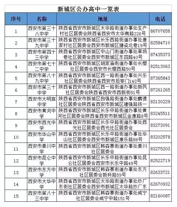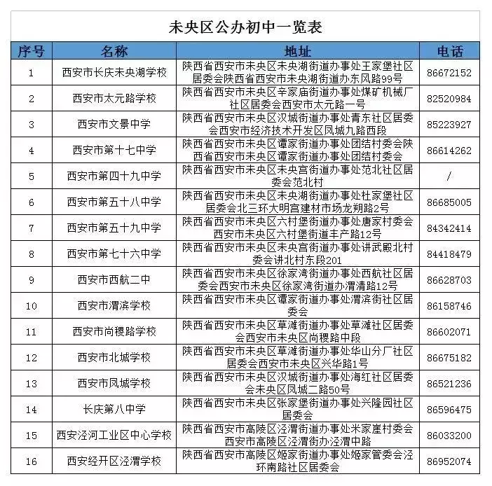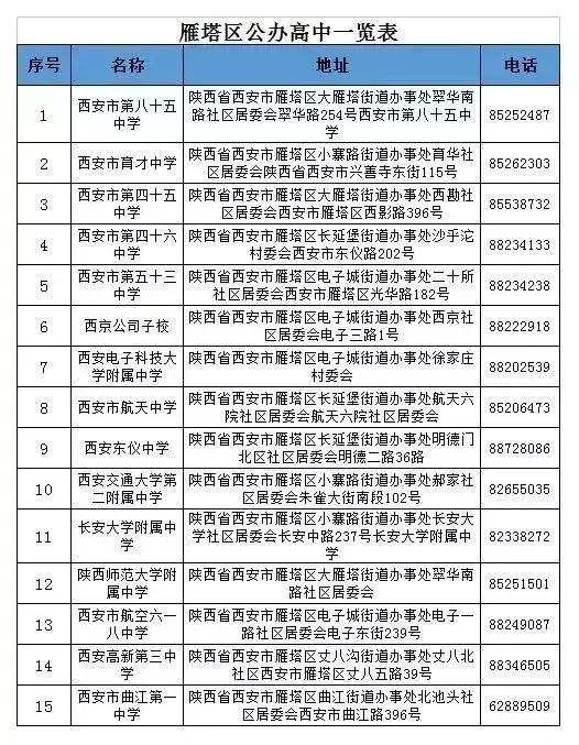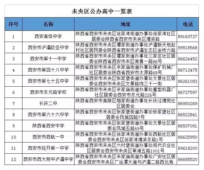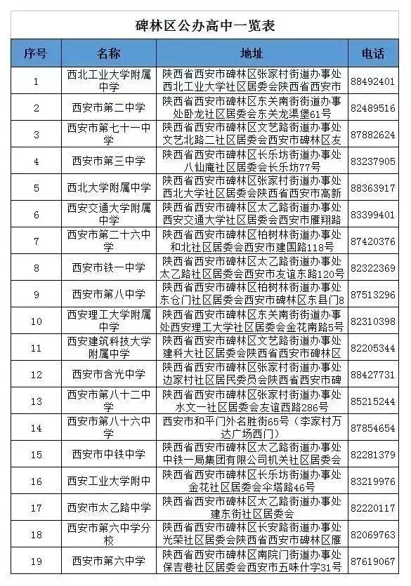 给大家整理了一份西安市现有公办初中/高中院校名单(分区域),包含院校地址、电话通通都在这里了!快点收藏下来吧!(区排名不分先后)