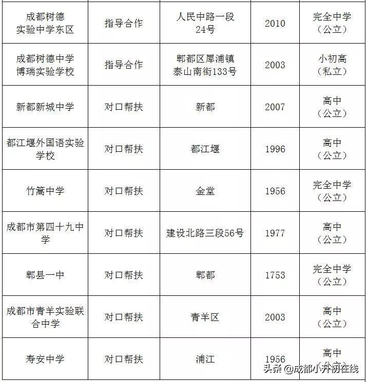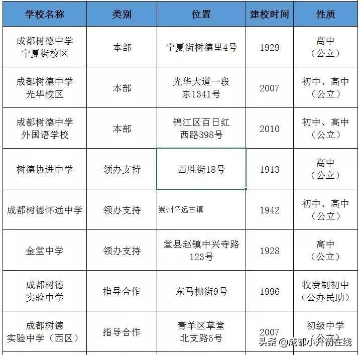 树德实验中学(东马棚)、石室联合中学(陕西街)、成都树德实验中学(东区)、成都市蜀华学校。
