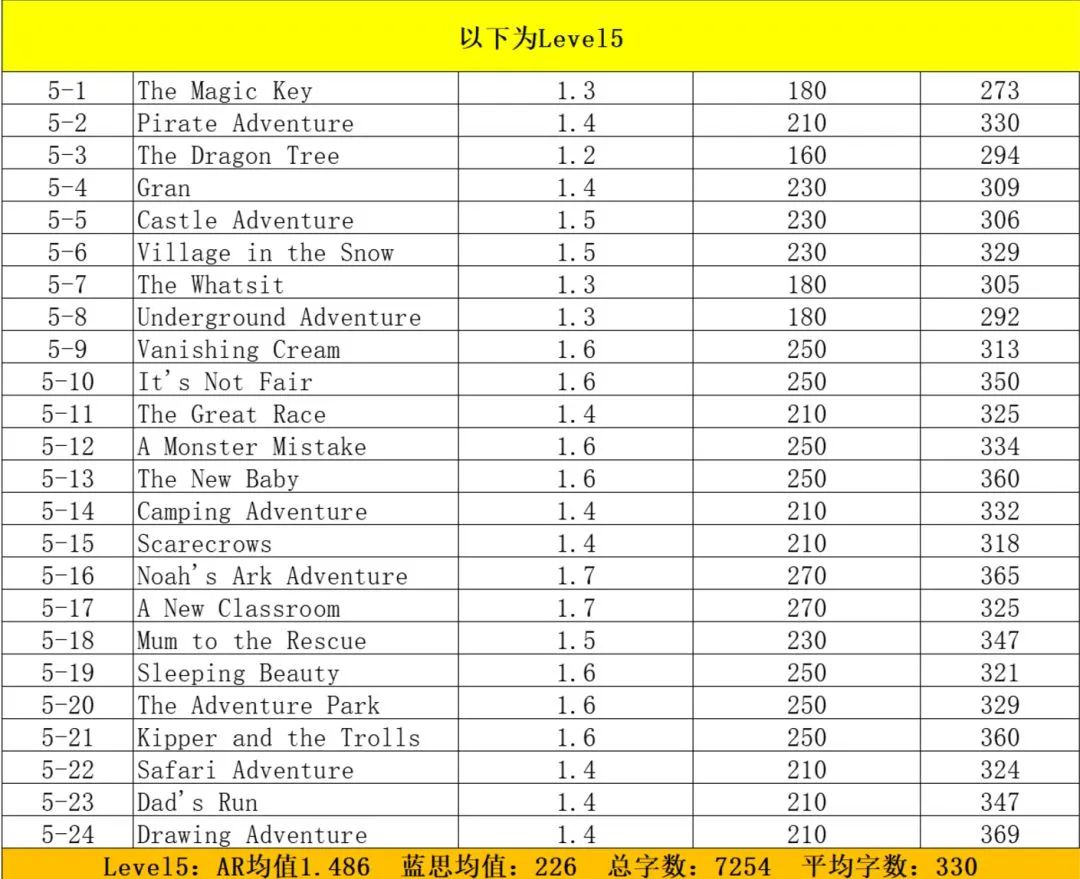 KET/PET/FCE:都是剑桥英语证书考试,字母比较多,解释起来繁琐,我直接引用网易文创的图了。剑桥英语五级证书考试(MSE)是剑桥最早开发的英语考试体系,也是雅思考试的鼻祖。鸡娃必考的 K 和 P 属于前两级,其中,K,也就是剑桥通用英语第一级(KET)对标国内中考英语水平,P 则是剑桥通用英语第二级(PET) 对标高考。不夸张地说,很多幼儿园级别的英牛已经在酝酿着进京赶考PET的路上了,鸡娃真的是不怕早啊,瑟瑟发抖……AR/GRL/Lexile/DRA:这四个像鬼画符一样的东西简单说来就是源自于英美的各种英语阅读分级体系,这应该属于原版蛙的领域:AR,即Accelerated Reader 分级阅读体系,是英国Renaissance Learning公司开发的一套英文阅读分级系统,它的分级与英美学校的年级系统联系紧密。你可以在AR官网上可以查到相应的书籍属于英美小学生哪个级别的水平。GRL,即Guided Reading Level(指导性分级阅读体系 ),是美国图书分级阅读体系,主要针对K-8年级需要阅读的书籍进行评估,它会按照从易到难的顺序划分成A-Z的26个等级,大家耳熟能详的RAZ就是这套体系分级的。DRA,即Developmental Reading Assessment (发展性阅读评估),也是made in America,一般会和GRL配合使用,用于对幼儿园到八年级学生阅读能力和图书难度的综合评估。Lexile,即Lexile Framework (蓝思分级阅读体系),也是个美国的体系,目前有超180个国家的学生在使用。蓝思指数是用数字加"L”来衡量的,难度范围为0L-1700L,数字越小表示读物难度越低或读者阅读能力越低。在蓝思官网使用“Find a book”功能也可以查到这本书所对应的蓝思指数。篇幅原因每一个展开说一下就要上万字了,原本这个领域也不是我的长项,以后有空了咱们再说吧。放上“分级阅读F4”的合体表,大家看个热闹就成了。