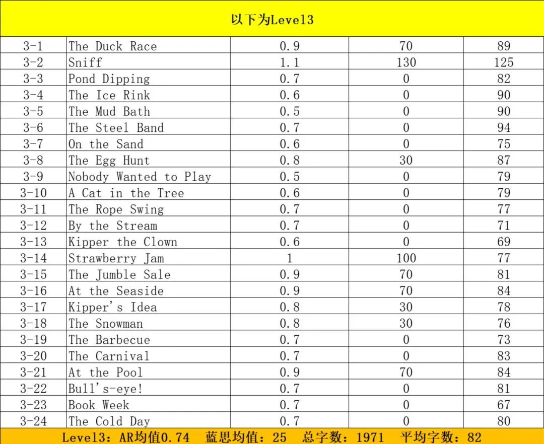 简单说,分级阅读F4无非就是4个数值,它不是应试用的,而是测评孩子的水平和能力用的。像大家耳熟能详的牛津树(ORT)也可以查到这4大体系的相应分值▼