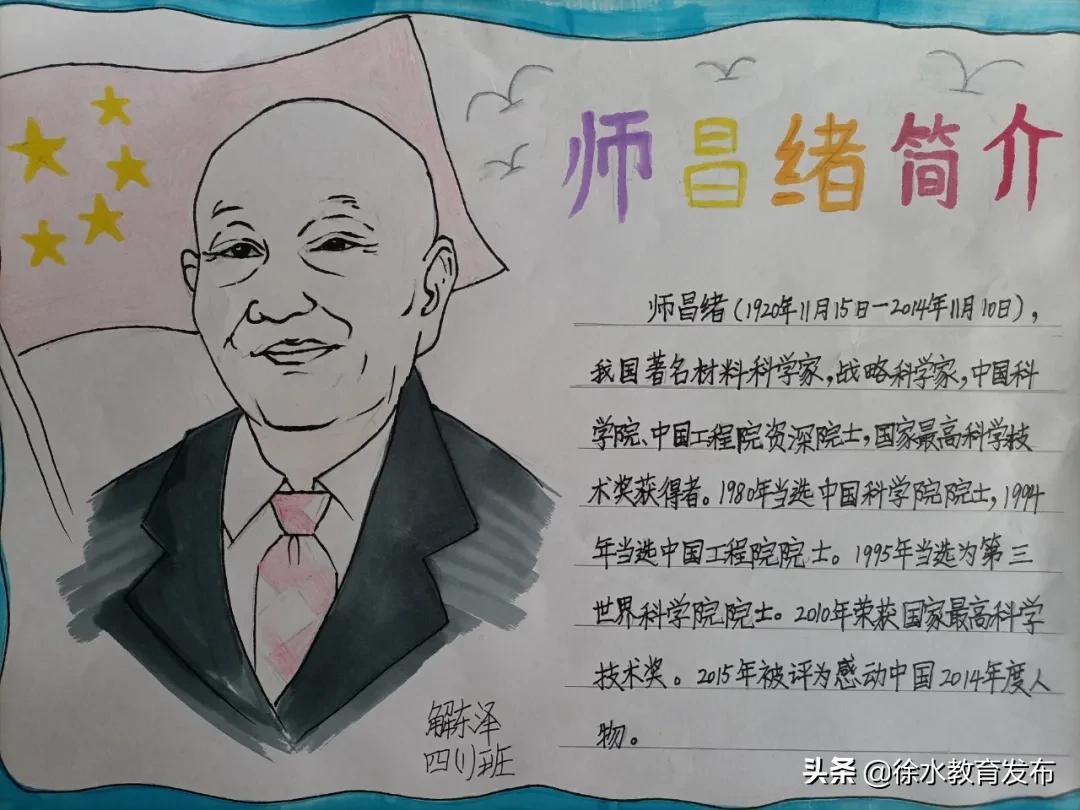 学生绘制纪念师昌绪手抄报。