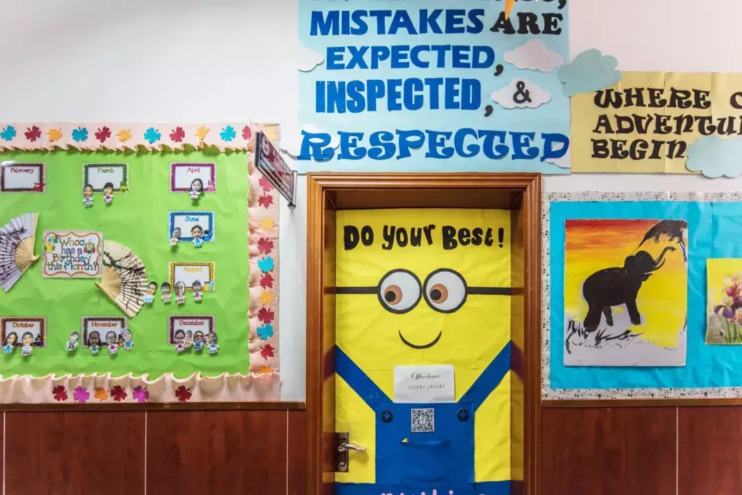 楼上墙上的学生作品