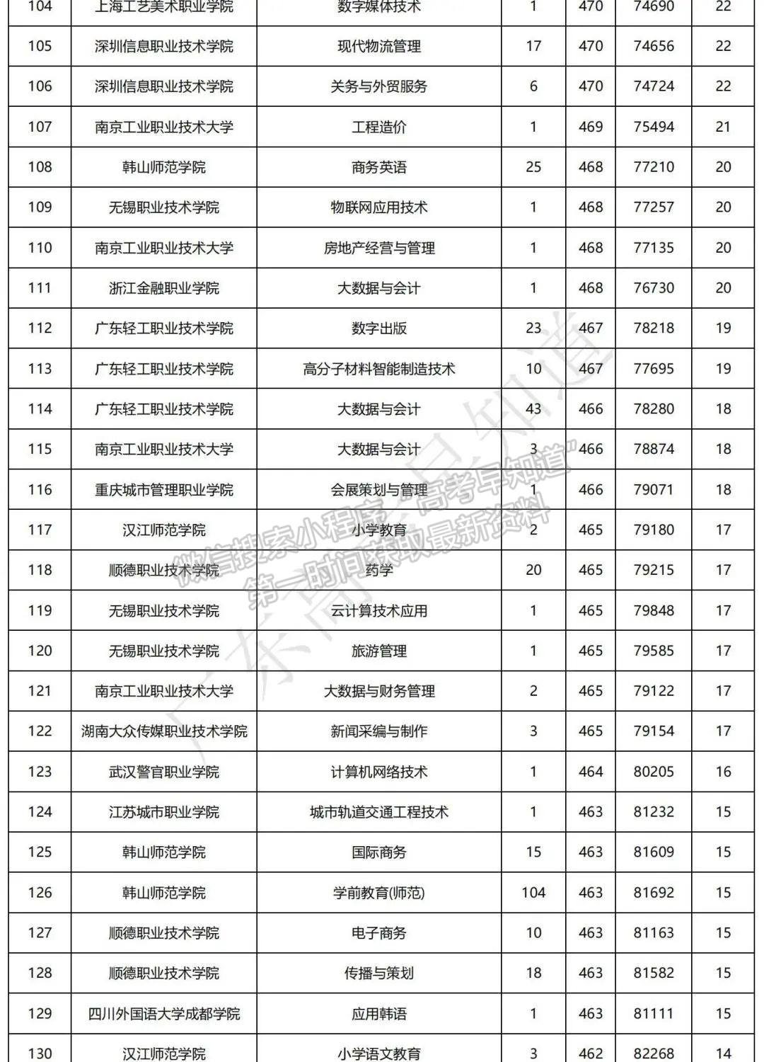 可以看到,本次的专科物理类投档中,共有75个院校投档线是超过本科线的,有17个院校是持平。
