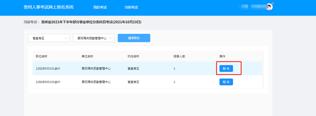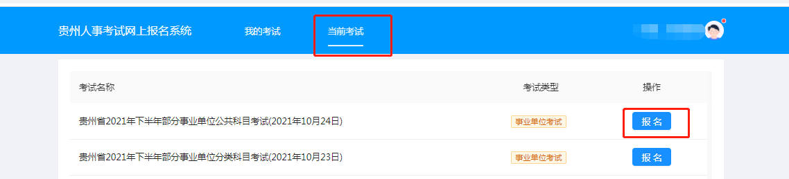 贵州省2021年下半年部分事业单位考试网上报名操作指南考生端