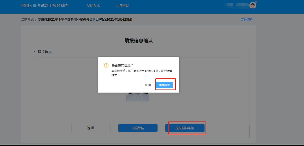 ★提交确认后将不能再修改任何信息,请考生核对无误后再确认提交。