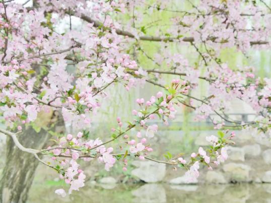 红的像火,白的像雪,粉的像霞,整个校园里都是一派生机勃勃的景象。